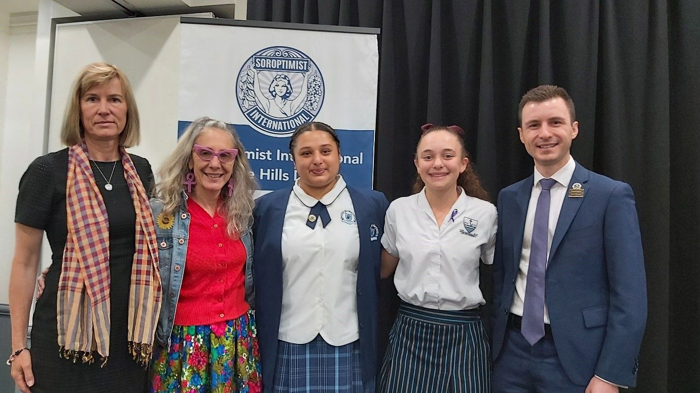 Julia West, Rosanna Barbero, Aarya Sambyal, Mia Fogolin, Mayor Dr Peter Gangemi