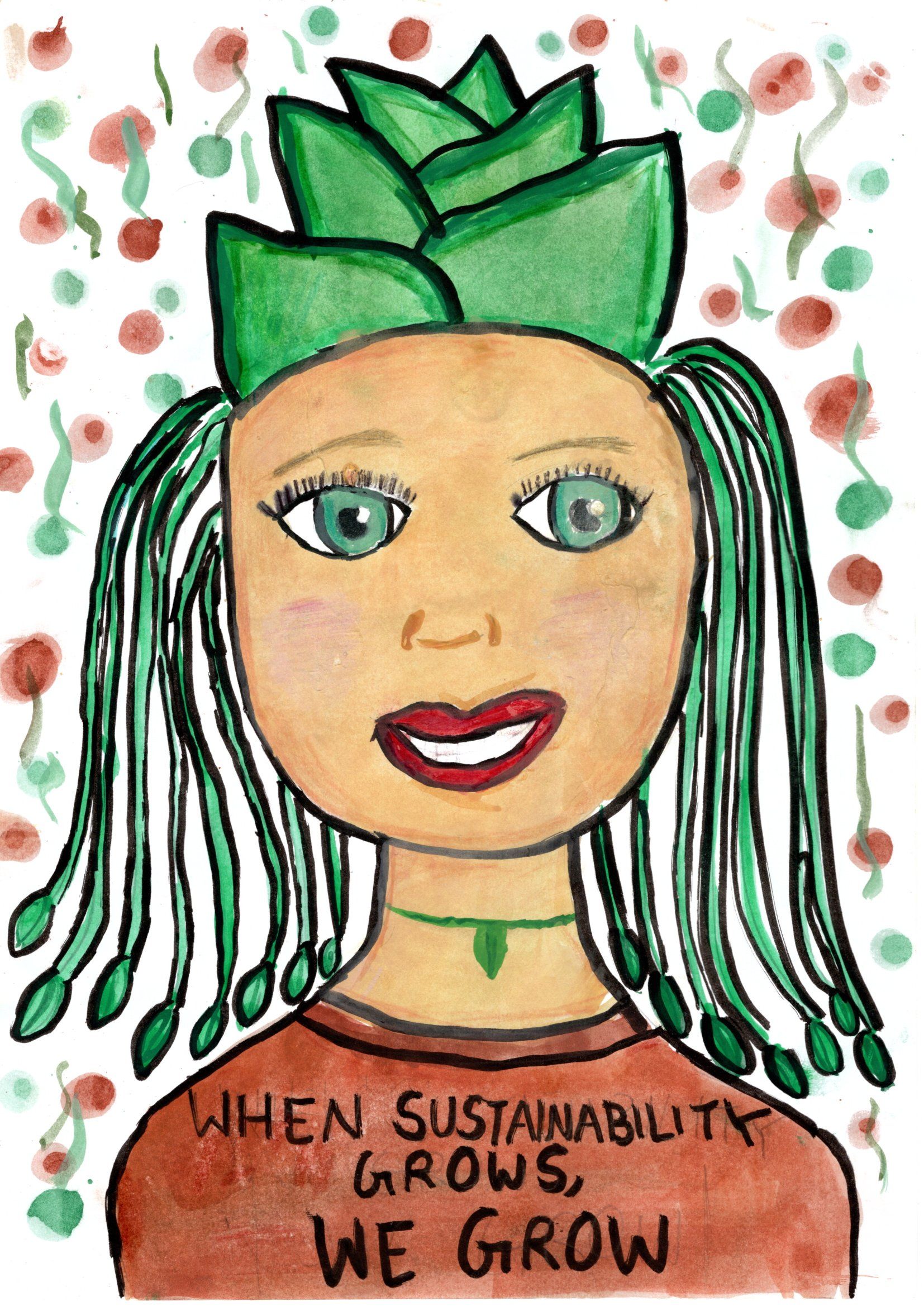 Using a wavy art style reminiscent of water, wind, and sound, this artwork portrays two contrasting environments. On the left, there's the thriving tree, while the right side represents a polluted setting, with air pollution and rising temperatures. As temperatures soar, drought becomes evident, manifesting as cracks on the figure's head. Below, a polar bear underscores the impact of melting ice on its habitat. The water emerging from the figure's mouth appears dirty, with floating debris—an unsettling reminder of the widespread issue of microplastics in our food, resulting from irresponsible human actions. Overall, the central female figure symbolizes both Mother Nature's resilience and the strength to fight for her rights. Nature too will fight for itself, and the consequences of our actions will inevitably return to us.