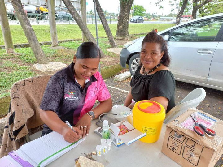Launch of Pinktober - Past Federation President Suman Lal and National President Fiji Anita Prasad, along with members of Soroptimist Fiji and the Fijian Ministry of Women, launched Pinktober month campaign. SI Suva, reported their partnership with the Ministry of Health and the Fiji Sports Council, so the large crowd of men and women attending the HFC National stadium during the IDC tournament (this is the amateur Fijian football cup tournament) could become aware of breast and cervical cancer. They provided free mammogramsby the medical team from MOH on the REACH Bus.