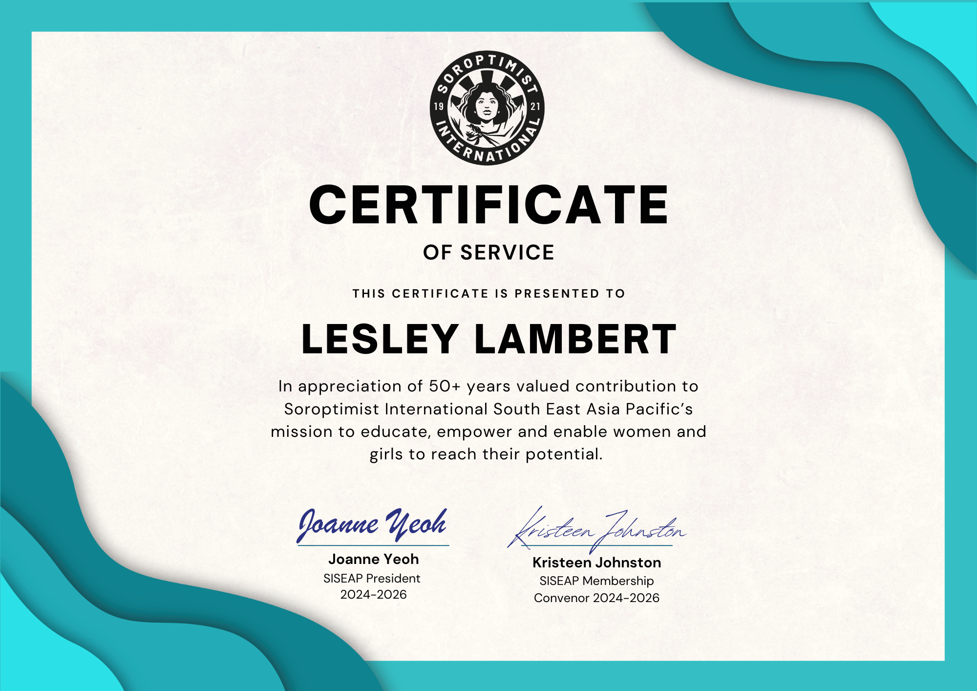 We are pleased to announce the recipients of the prestigious certificates honoring those who have dedicated over 50 years of service with Soroptimist International South East Asia Pacific.