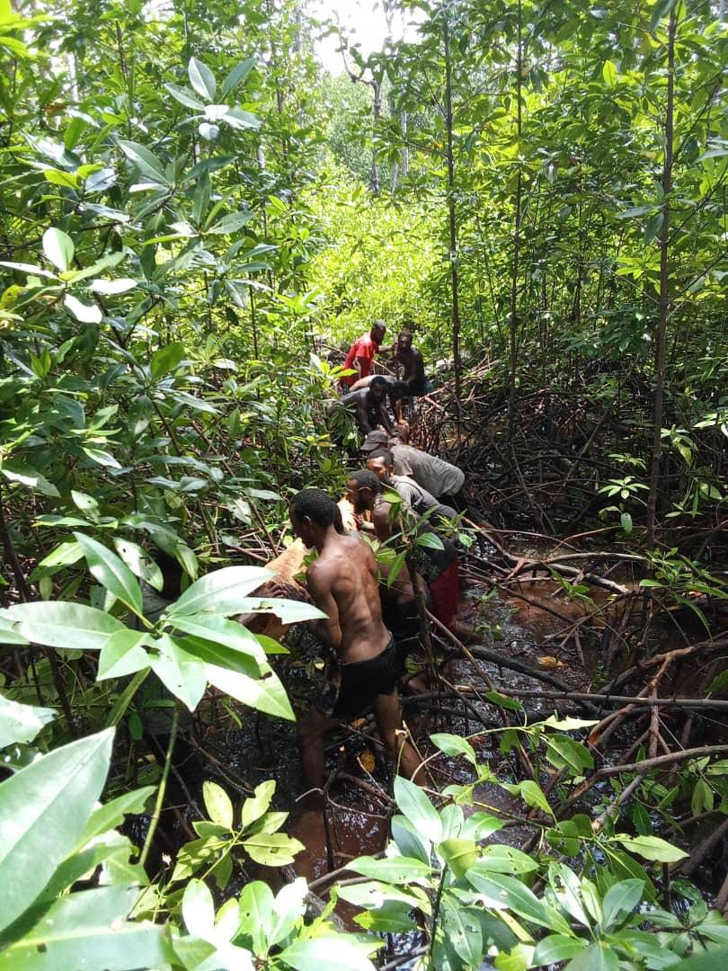 The men have become involved in collecting the timber to be used for the pylons, preparing and erecting them.