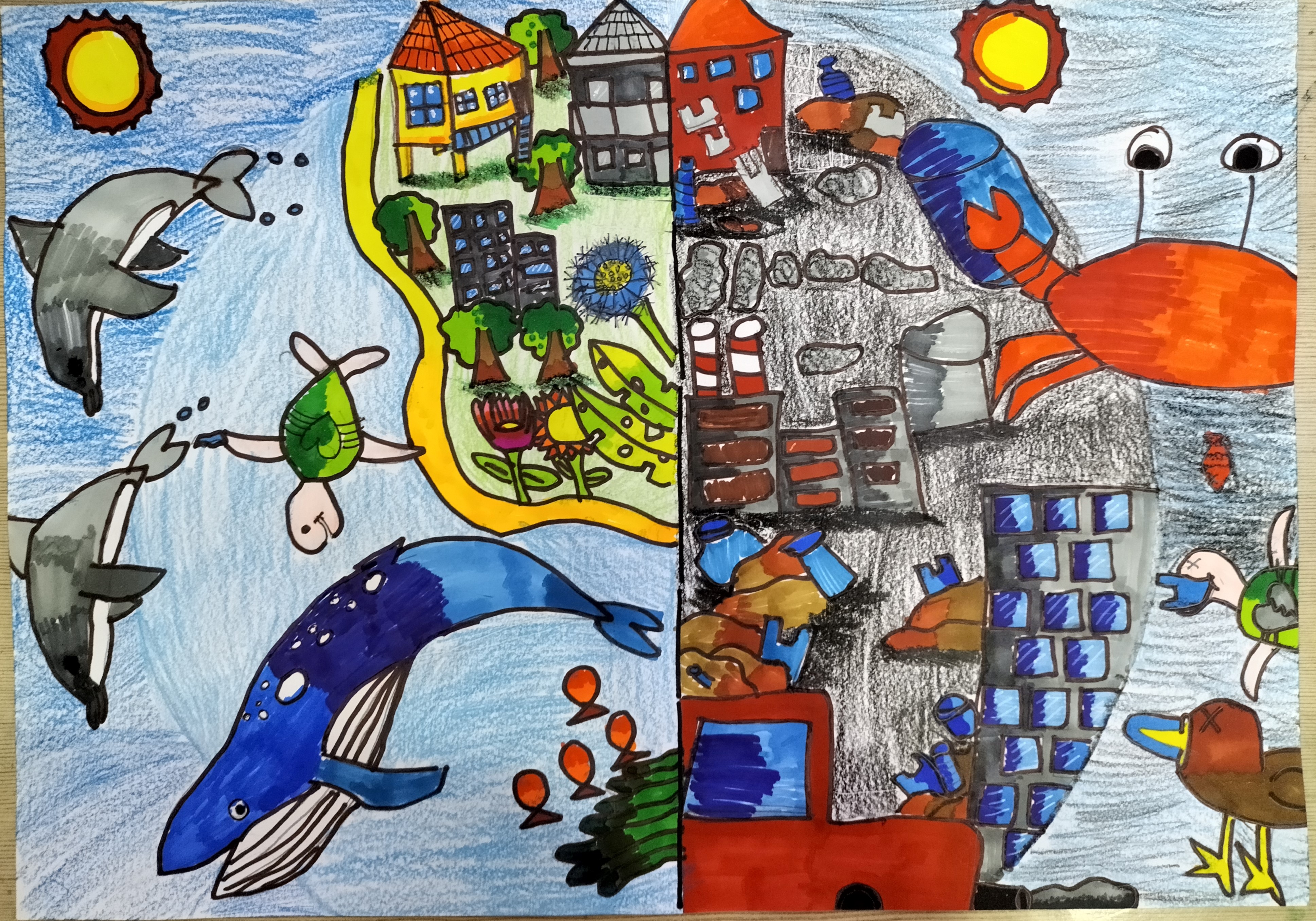 In 2024 SISEAP was pleased to receive art entries from  clubs, schools and students.  the submitted entries were skillful, varied and thoughtful.  The evidence of local themes was illustrated in unique ways, so all entrants should be very proud of their creations.  We can only showcase the finalists, but pleased be assured that the judges considered all your work in detail, so that we could appreciate your individual style and environmental messages.  Judges were coming in blind without any context of your home, your lessons with teachers who guided you, or your local concerns.  So please appreciate our different backgrounds in curating your works.  Every entry was unique.