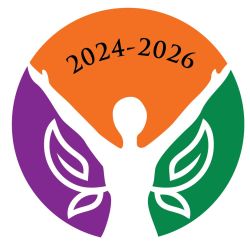 The biennium logo depicts our Soroptimist lady with her hands to the sky as she soars on wings of eagles. The colours purple, orange and green are not new to us.